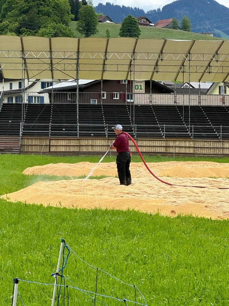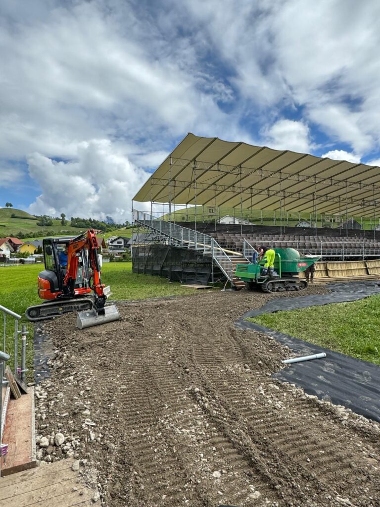 In rund einer Woche ist es soweit, das Luzerner Kantonale Schwingfest in Hasle beginnt. Bis dahin muss noch einiges passieren, trotzdem konnten diese Woche mit der tatkräftigen Hilfe diverser Helferinnen und Helfer, darunter auch Athleten des Entlebucher Schwingerverbandes, schon einiges aufgebaut werden.